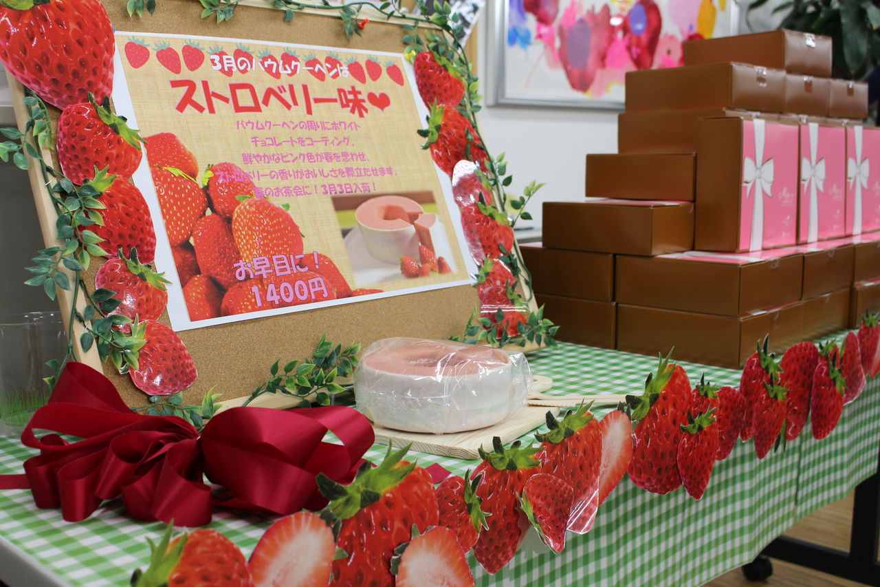 今月のバームクーヘンのお味は、【ストロベリー】です!!