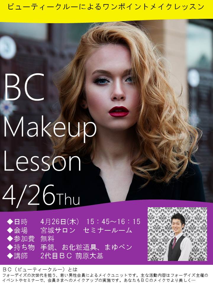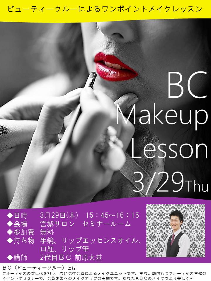 3/29(木)から2代目ビューティークルーの前原大基さんによるメイクアップレッスンを毎月開催いたします。