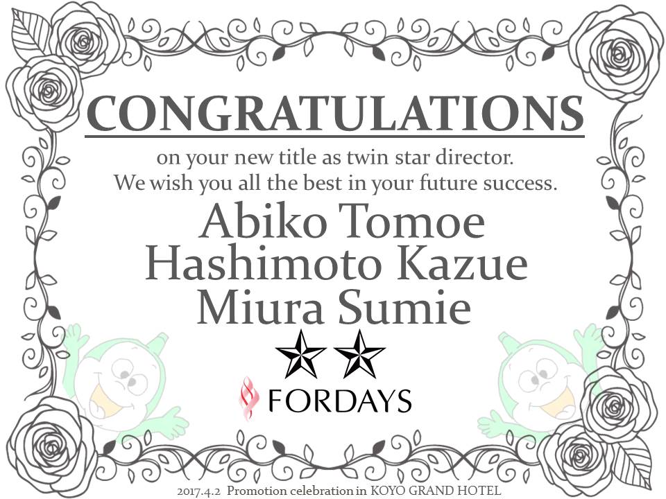 続きまして、4/2に宮城県の江陽ホテルで「ツインスターディレクター昇格パーティー」が開催されました。