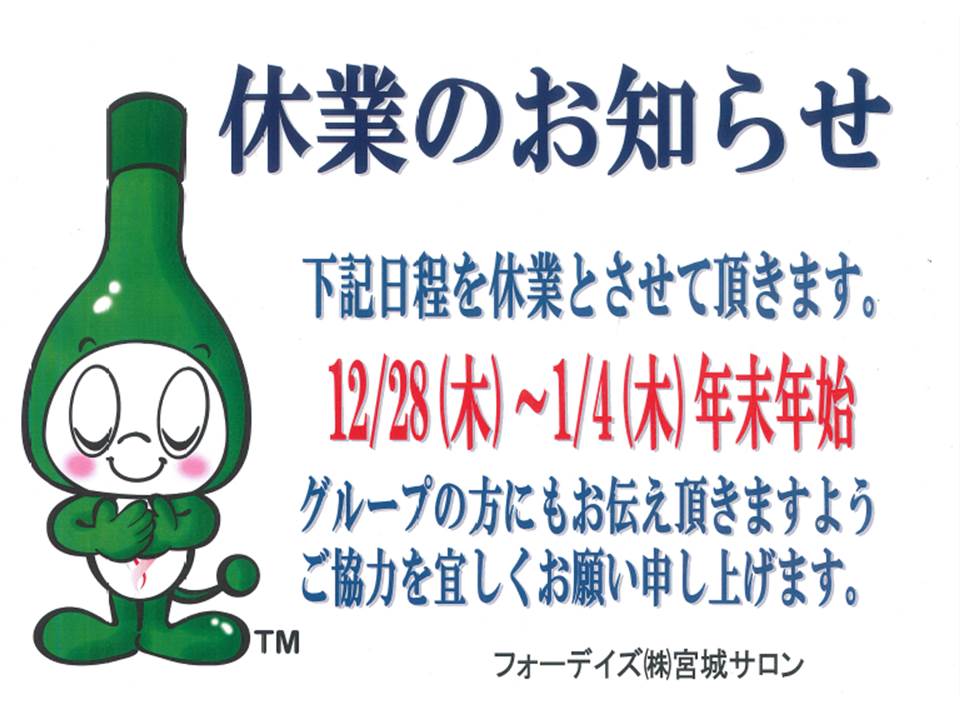 宮城サロンは2017/12/28(木)~2018/1/4(木)までお休みです。
