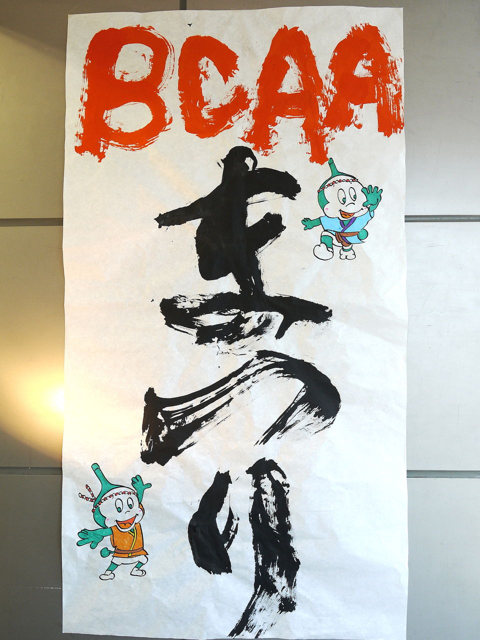 スターディレクターで書家の先生に大きく「BCAAまつり」と筆で書いて頂いたものに、人気沸騰中のだいち画伯が、お祭りどりんぴん(アゲアゲ☆バージョン)で、華やかに。夢のコラボレーション第2弾が実現!