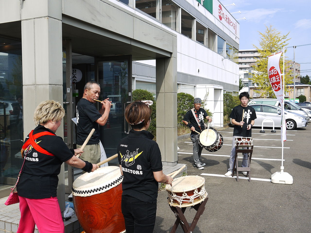 まずは入口から。祭りっぽい演出を、会員様のご協力でして頂きました。太鼓と笛で、皆様をお出迎え。