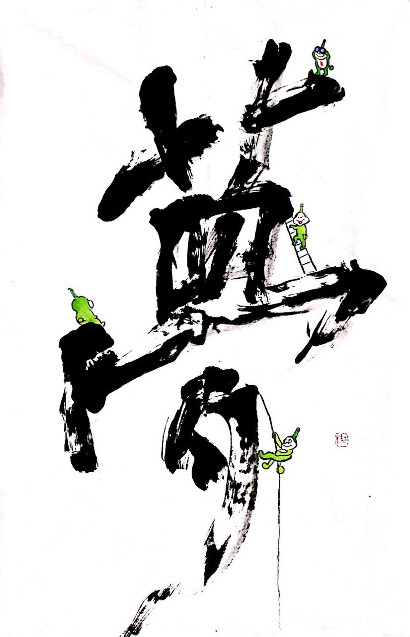 oを鏡に見立てて、「自分の笑顔を確認して欲しい」との意味がある作品。gを楽しそうに滑るどりんぴんが可愛い!