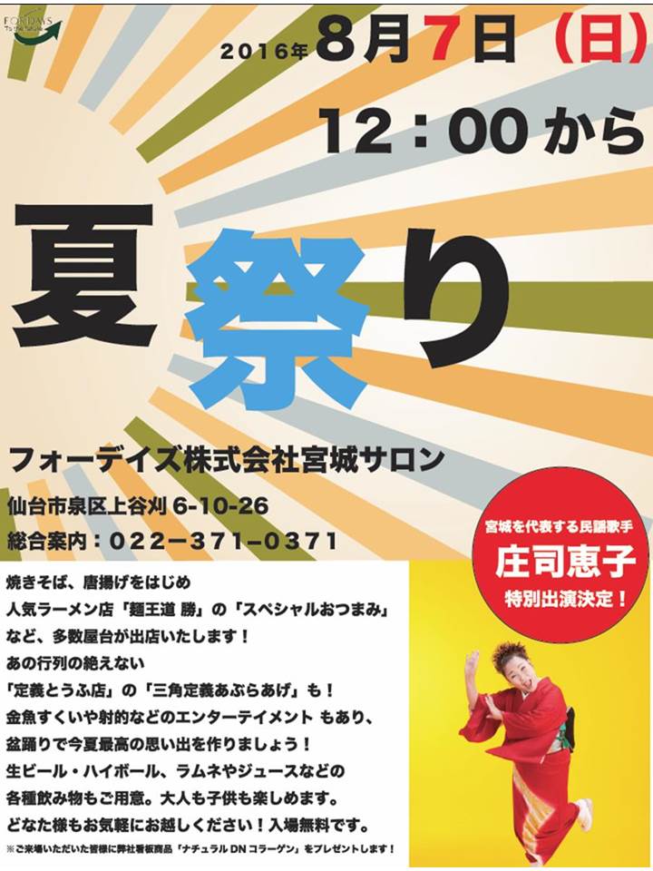 さて本日は、宮城サロンにて8/7(日)に開催される夏祭りについてのご案内なのですが、